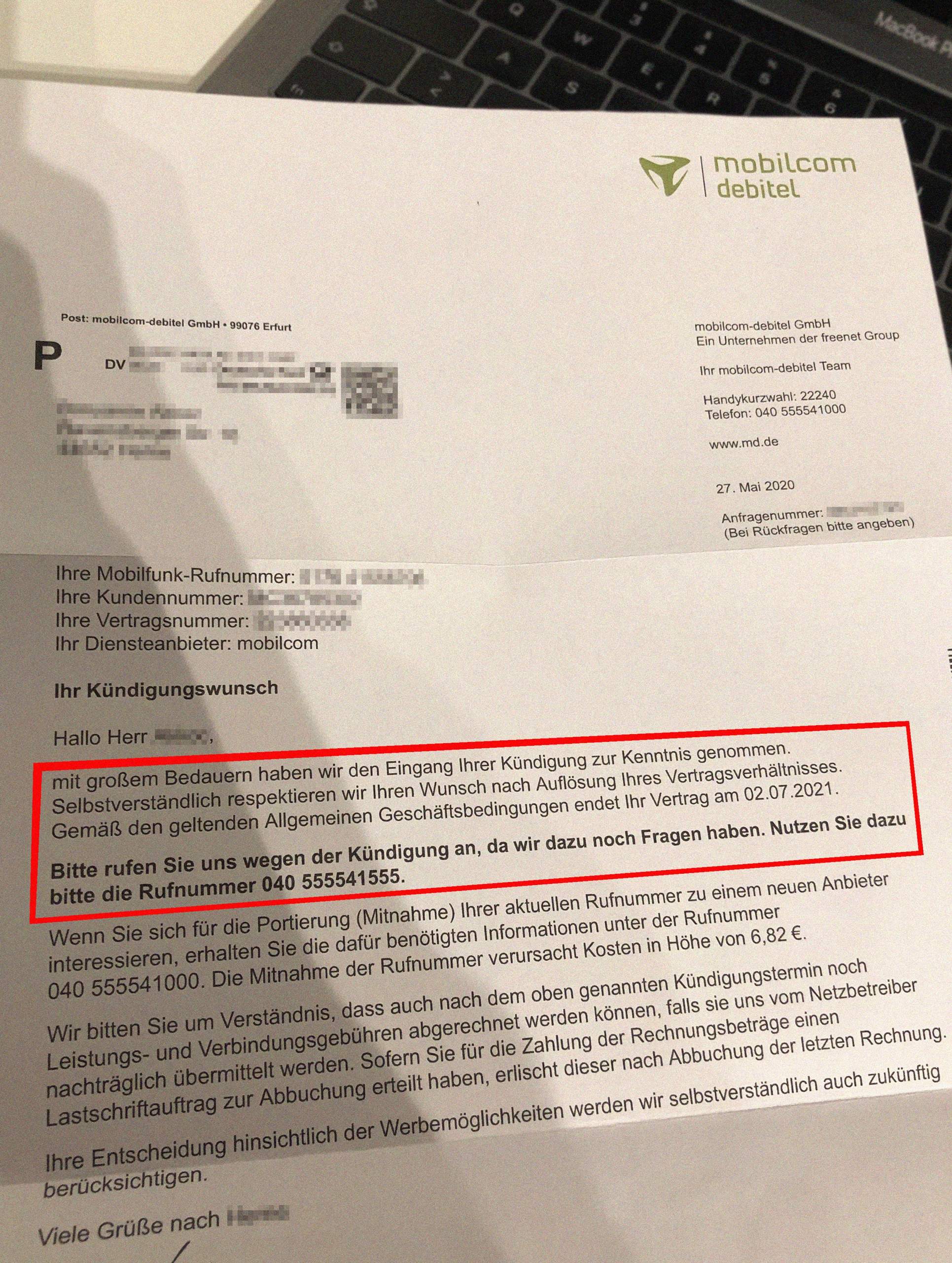 Mobilcom Debitel Kundigung Kostenlose Muster Vorlage