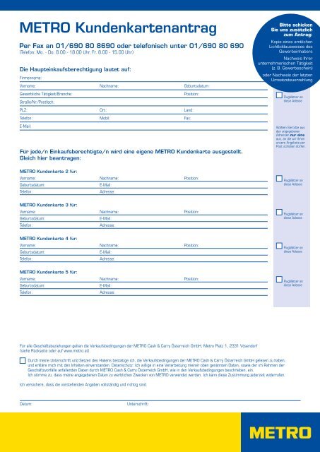 Zusatzkarten Fur Bestehende Kunden Metro At