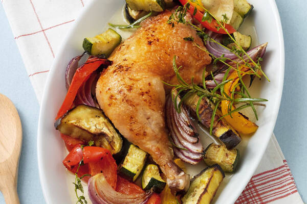 Hahnchenschenkel Mit Buntem Gemuse Rezept Kuchengotter