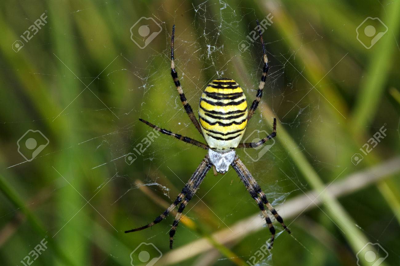 Schone Gelbe Schwarze Gestreifte Spinne Im Netz Lizenzfreie Fotos Bilder Und Stock Fotografie Image 36317495